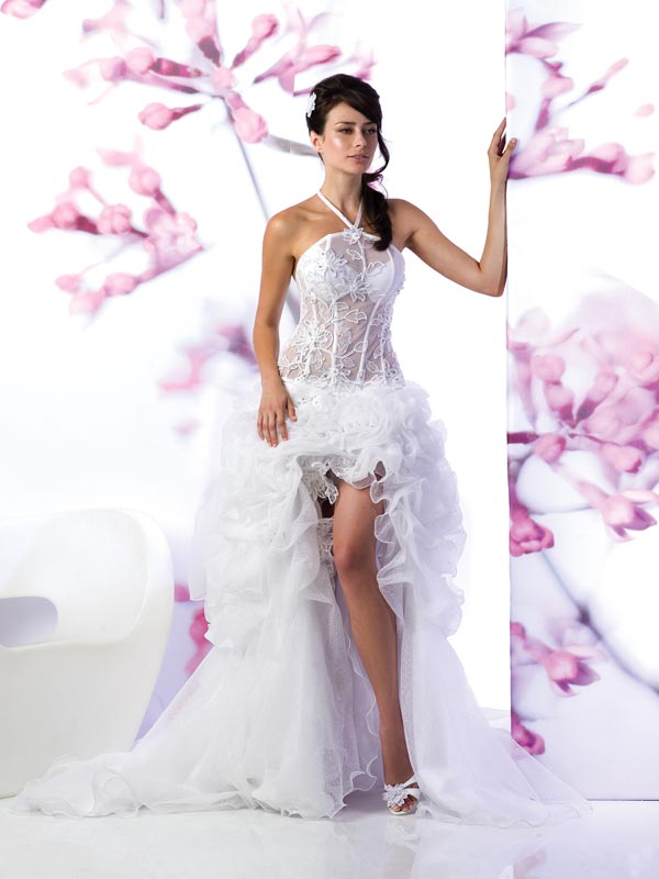 Two pieces hand made My Lady couture Bridal dress. The strapless bodice is a corset decorated with the finest Swarowsky crystals and the skirt is made from the finest organza fabric.